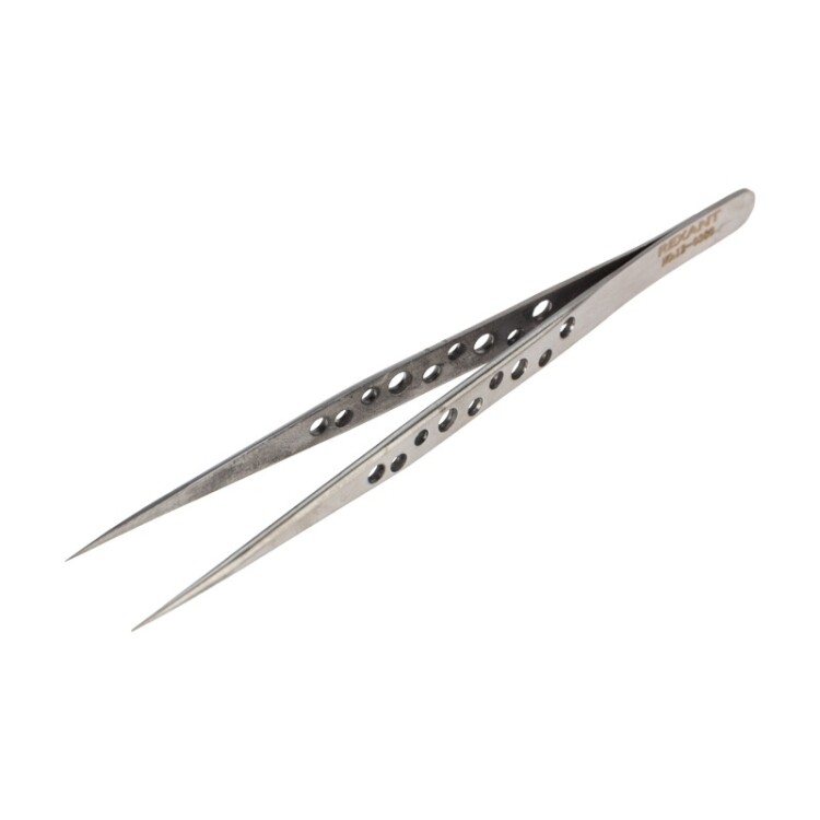 Стальной пинцет REXANT Airy используется для проведения манипуляций с различными небольшими предметами и деталями, такими как крепеж, шестеренки, марки, драгоценные камни и пр. Широко применяется в паяльных и ручных работах, сборочном производстве, филателии, ювелирном деле, робототехнике, промывке золота и т. д. Инструмент изготовлен из долговечной нержавеющей стали AISI 304, устойчивой к поражению коррозией. Обладает антимагнитными свойствами. Корпус оснащен отверстиями, которые облегчают вес инструмента. Заостренные концы позволяют производить работы, требующие высокой точности. Оптимальная длина и небольшой вес пинцета делают работу наиболее комфортной.