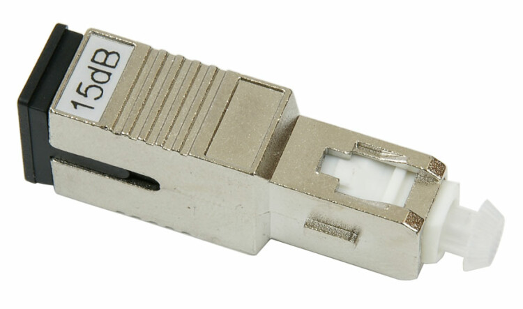 Оптические аттенюаторы предназначены для внесения преднамеренного ослабления в волоконно-оптические линии связи (ВОЛС). Оптические аттенюаторы применяются в локальных оптических сетях, сетях кабельного телевидения, магистральных сетях передачи данных, а также используются при проведении контрольно-измерительных работ. Основные качественные показатели аттенюаторов — высокая стабильность установленного ослабления, низкий уровень обратного отражения, широкий диапазон рабочих температур, компактность и высокая механическая прочность. Оптический аттенюатор Male-Female (вилка-розетка) для волокна SM, разъемы SC, вносимое затухание 15dB.