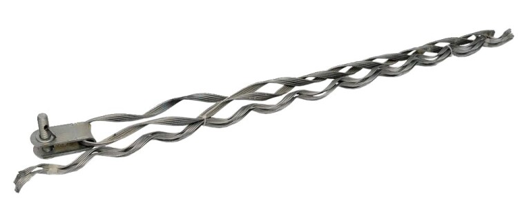Предназначен для крепления оптических самонесущих кабелей на опорах освещения, опорах ВЛ связи, контактных сетей железных дорог, зданиях и сооружениях. Зажим состоит из силовой части, которая представляет собой U-образную прядь из нескольких спиральных проволок, скрепленных между собой специальным раствором, с внутренней стороны которых нанесет абразив. Протектор для дополнительной защиты кабеля представляет собой комплект отдельных спиралей или склеенных прядей, навиваемых на поверхность провода. Изготавливается в климатическом исполнении категории УХЛ 1.