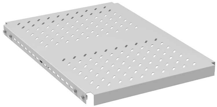 Полка стационарная серверная, устанавливается на 19-ти дюймовые монтажные и центральный профили с боковой стороны, в зоне ZERO-U. Имеет 6 точек крепления и предназначена для размещения оборудования массой не более 200кг. Полка имеет высоту 1U и фиксированную глубину установки 700мм.