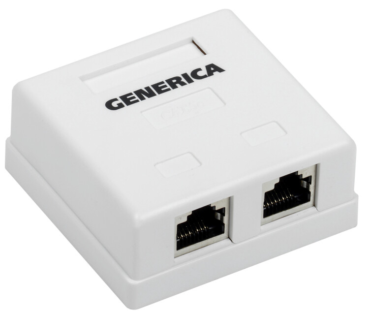Розетка внешняя 2 порта RJ45, FTP, кат.5e, GENERICA CS2-1C5EF-22-G