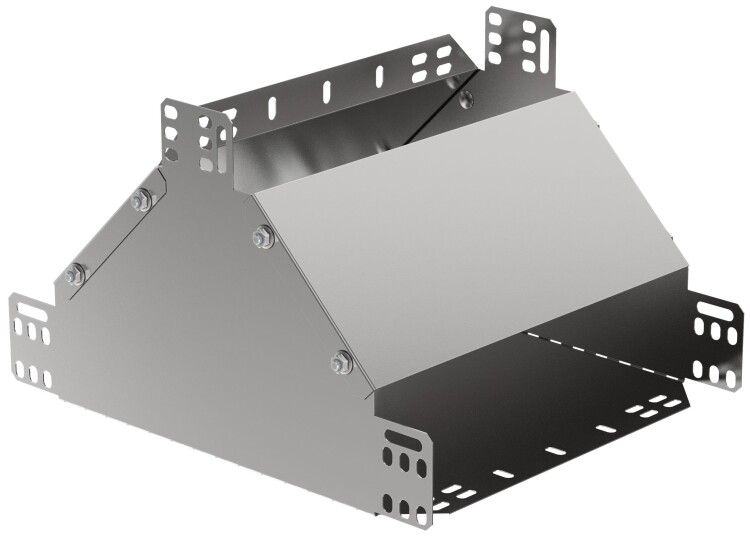 Ответвитель Т-образный вертикальный вверх предназначен для организации Т-образного отвода кабельной трассы вверх без изменения направления лотка. Аксессуар изготовлен из стали горячего цинкования методом Сендзимира (защитный слой цинка не менее 10 мкм).