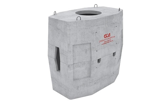 Предназначен для установки на проезжей части в качестве проходного, углового или разветвительного колодца (рекомендации по выбору колодцев для проектирования и строительства). Колодец имеет в сечении восьмиугольную форму и состоит из двух элементов – верхней и нижней половин. На элементах колодца имеются петли для строповки при погрузке и разгрузке их с автомобиля, а также для опускания в котлован. Перекрытие верхнего элемента дополнительно армировано и содержит круглое отверстие диаметром 600 мм для формирования горловины с люком. В основании нижней половины колодца с внутренней стороны расположена прямоугольная ниша. При необходимости, ее стенку вырезают для создания дренажа. На внутренних поверхностях торцевых стенок элементов колодца имеются ниши. В центре ниш расположены технологические отверстия для ввода двух труб с внутренним диаметром 100 мм. Для ввода и вывода каналов на наружных поверхностях боковых стенок колодца расположены по две ниши, с каждой из сторон. В варианте комплектации «ГЕК» вмес