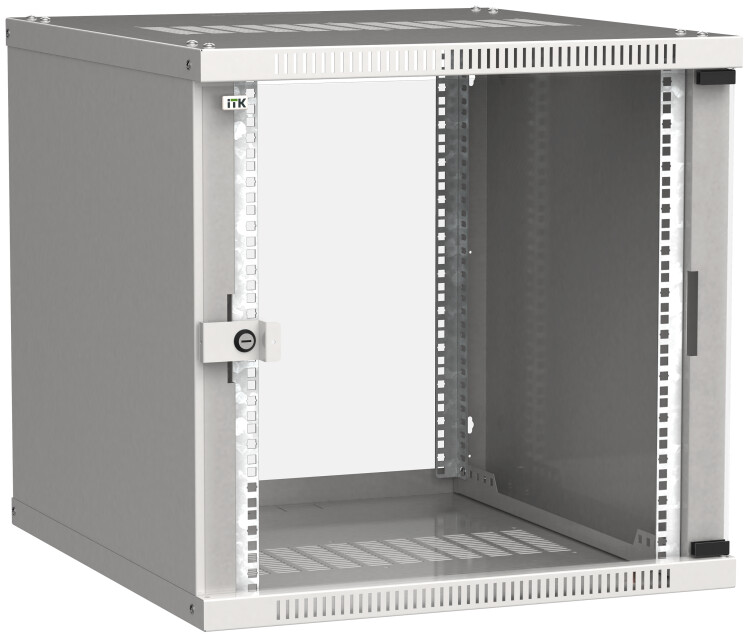 Шкаф настенный 19", 9U, 600х450мм, стекл. дверь, серый, LINEA WE, ITK LWE3-09U64-GF