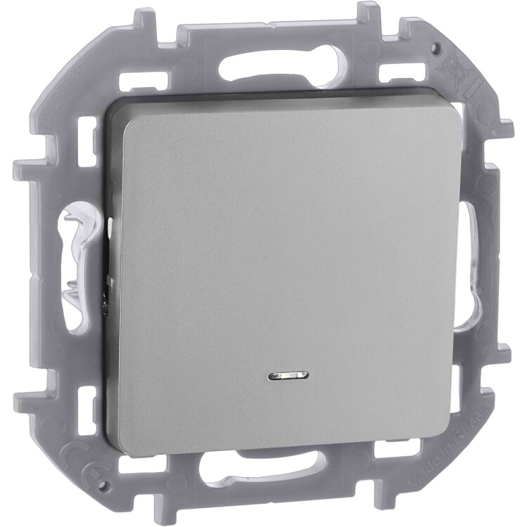 INSPIRIA Выключатель 1-клавишный с подсветкой/индикацией схема 1L 10АХ безвинтовые зажимы алюминий