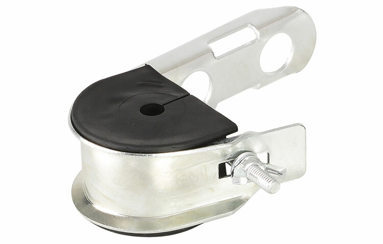 Зажим используется для подвески кабелей ADSS с внешним диаметром от 10 до 15 мм на проходных опорах (столбах). Имеет ширину 40 мм. Крепится лентой монтажной, либо анкерным болтом. Зажим рекомендуется использовать для прямых участков кабельной трассы или же при углах поворота трассы менее 25°. Если угол поворота трассы превышает 25°, то более безопасно крепить кабель на опоре (столбе) двумя анкерными зажимами.