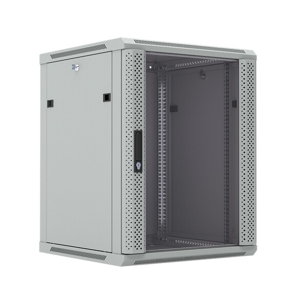 Настенный телекоммуникационный шкаф DANNMAN WXP-2268-G-RAL7035 рассчитан на установку 19-дюймового оборудования высотой 22U. Стальной корпус в сером цвете и габариты 1086×600×800 мм подходят для организации компактного узла связи, а допустимая нагрузка 85 кг позволяет размещать типовые ИТ- и СКС-компоненты. Стеклянная дверь с перфорацией по бокам обеспечивает визуальный контроль и поддерживает циркуляцию воздуха. Для аккуратного ввода кабелей предусмотрены отверстия под щёточный ввод сверху и снизу, а также подготовка под установку вентиляторного модуля в верхней панели.