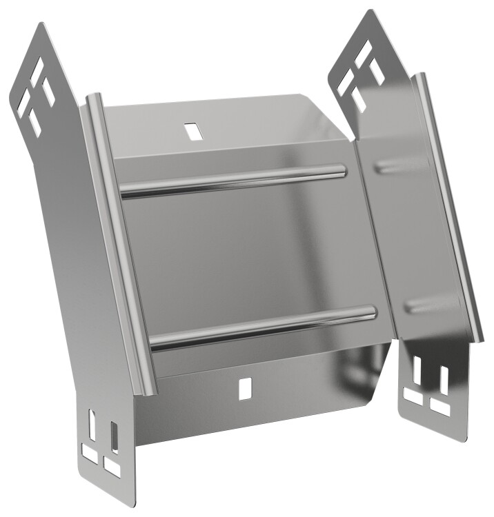 Поворот вертикальный внешний на 45° предназначен для организации поворота кабельной трассы в вертикальной плоскости. Стыковка аксессуара с лотком осуществляется за счёт телескопического соединителя. Подходит для всех типов листовых лотков серии ESCA. Крышка на аксессуар заказывается отдельно. Аксессуар изготовлен из стали оцинкованной методом Сендзимира (защитный слой цинка не менее 5-10 мкм).