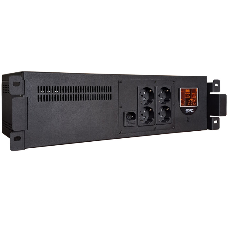 Линейно-интерактивные ИБП SVC RTO-1.5K-LCD/RS Интерактивный стоечный ИБП. Устройство, позволяющее подключенному оборудованию некоторое время работать от встроенных аккумуляторов, при пропадании электрического тока или при выходе его параметров за допустимые нормы. ИБП данной серии имеют ЖК-дисплей с подробной информацией о всех параметрах устройства. Технология SMART, позволяет без Вашего участия, корректно отключить питание компьютера без потери данных. ИБП комплектуется программным обеспечением на русском языке. Возможность установки в стойку.