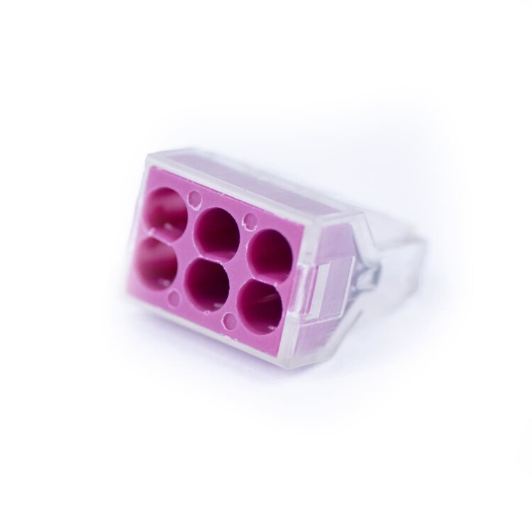 Соединительная изолированная клемма предназначена для соединения одножильных медных проводников. Фиксация проводников в клемме осуществляется при помощи плоско-пружинного зажима. Клеммы обеспечивают простой и быстрый монтаж. Основные характеристики: Количество зажимов - 6, Наличие контактной пасты - нет, Проводник - одножильный, Материал проводника - медь, Сечение проводника - до 4,0 мм², Номинальный ток - 24 А, Максимальное напряжение - 400 В, Материал контактов - луженая медь, Материал корпуса - полиамид, Температура эксплуатации -30°C...85°C, Количество в упаковке - 10 шт.