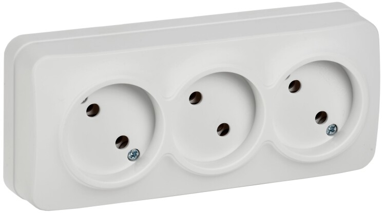 GLORY Розетка 3-местная для открытой установки без заземления без защитных шторок 10А РС23-2-ХБм бел