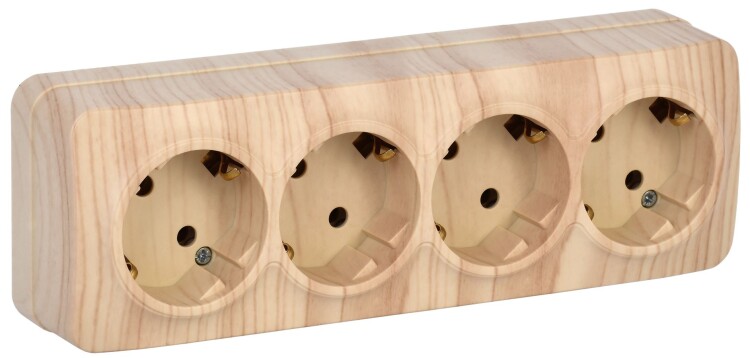 GLORY Розетка 4-местная для открытой установки с заземлением без защитных шторок 16А РС24-3-ХС сосна
