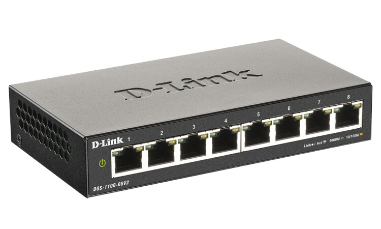 Управляемый коммутатор DGS-1100-08V2, оснащенный 8 портами 10/100/1000Base-T, предназначен для использования в сетях предприятий малого и среднего бизнеса. Функции управления, диагностики, поиска и устранения неисправностей, а также энергосберегающие технологии позволяют использовать DGS-1100-08V2 для решения различных задач.