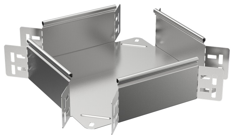 Крестовина предназначен для организации X-образного разветвления кабельной трассы в горизонтальной плоскости. Стыковка аксессуара с лотком осуществляется за счёт телескопического соединителя. Подходит для всех типов листовых лотков серии ESCA. Крышка на аксессуар заказывается отдельно. Аксессуар изготовлен из стали оцинкованной методом Сендзимира (защитный слой цинка не менее 5-10 мкм).