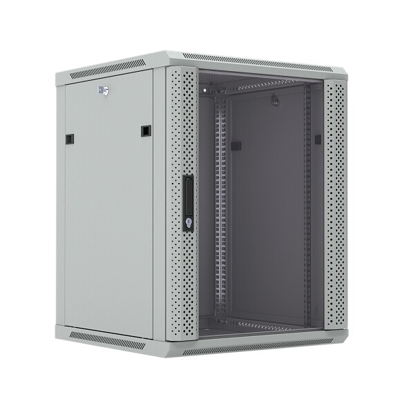 Настенный телекоммуникационный шкаф DANNMAN WXP-1266-G-RAL7035 предназначен для размещения 19-дюймового оборудования в распределённых узлах и помещениях с ограниченным пространством. Исполнение на 12U с габаритами 650×600×600 мм обеспечивает удобный монтаж и обслуживание, а стеклянная дверь с перфорацией по бокам улучшает контроль и вентиляцию. Конструкция рассчитана на нагрузку до 85 кг и выполнена из стали.
