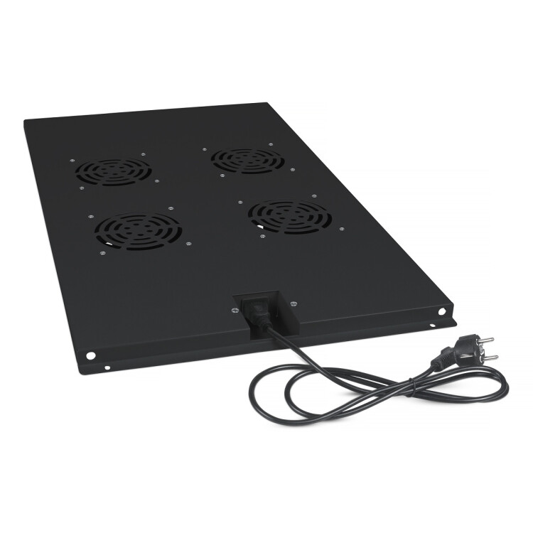Модуль вентиляторный потолочный предназначен для охлаждения внутренней части телекоммуникационного шкафа путем отвода тепла наружу. Модель предназначена для установки в напольный телекоммуникационный шкаф Cabeus глубиной 1200мм. Вентиляторный модуль состоит из металлического конструктива с закрепленными на нем 4-мя вентиляторами. Питание модуля осуществляется подключением его к сети напряжением 220В с помощью шнура питания IEC 320 C13/Schuko длиной 1,5 м. Покрытие вентиляторного модуля – порошковая краска черная (RAL9004). Установка модуля производится путем крепления с внутренней стороны шкафа к верхней его части.