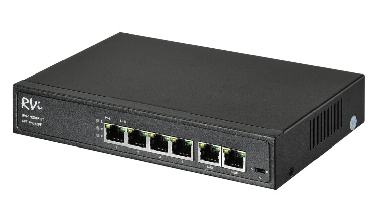 Сетевой коммутатор – RVi-NSP4F/2CH предназначен для соединения нескольких узлов компьютерной сети в пределах одного или нескольких сегментов, а также передачи питания с использованием технологии PoE.