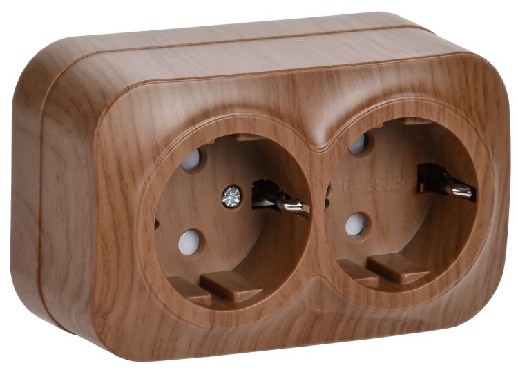 GLORY Розетка 2-местная для открытой установки с заземлением с защитными шторками 16А РСш22-3-ХД дуб