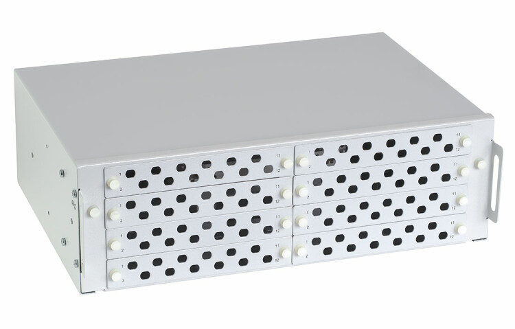 Предназначен для установки в стойки 19'', а при доукомплектации дополнительными кронштейнами в стойках и шкафах типоразмеров 21'' (ETSI) и 23''. Кросс имеет выдвижную оптическую полку, что облегчает монтаж и последующее обслуживание. В кроссе используются широкие сменные металлические планки на 12 отверстий, которые обеспечивают установку адаптеров-розеток типа FC и ST. Также к кроссам ШКОС-ВП подходят планки из линейки кроссов ШКОС-М. Крепление кабеля по оболочке осуществляется с помощью пластиковых прижимов с винтами, установленных на дне корпуса. Для дополнительной надёжности кросс комплектуется червячными стальными хомутам для фиксации кабеля за стальные ламели. Кабельные вводы на задней стенке корпуса закрыты эластичными заглушками конусообразной формы с кольцевыми метками. Центральный силовой элемент ОК крепится при помощи металлической скобы.