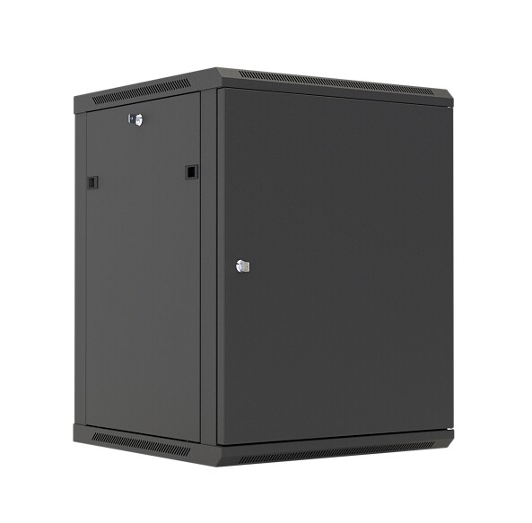 Шкаф DANNMAN WXP-2268-S-RAL9005 предназначен для настенного размещения 19-дюймового оборудования высотой 22U в серверных и телеком-зонах. Формат 1086×600×800 мм обеспечивает удобную глубину для монтажа оборудования, а стальной корпус в черном цвете рассчитан на степень защиты IP20 и нагрузку 85 кг. Металлическая дверь оснащена замком под ключ, боковые стенки выполнены с защёлками и замком под ключ. Для аккуратного ввода кабелей предусмотрены отверстия под щёточный ввод в верхней и нижней панелях, а в верхней панели также есть отверстия для установки вентиляторного модуля.