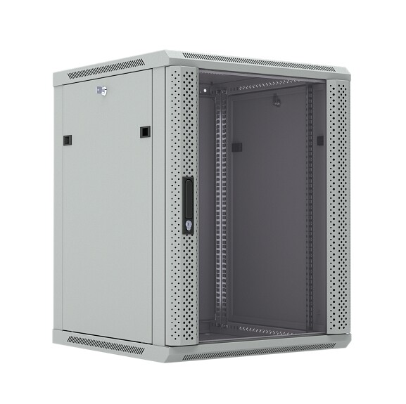 DANNMAN WXP-2766-G-RAL7035 Настенный шкаф 19″ высотой 27U подходит для размещения телекоммуникационного оборудования в помещениях и распределительных узлах. Стальной корпус 1304x600х600 мм рассчитан на нагрузку до 85 кг, а стеклянная дверь с боковой перфорацией делает обслуживание и контроль установленного оборудования более удобными. Для аккуратной коммутации предусмотрены отверстия под щёточный ввод сверху и снизу и подготовка верхней панели под вентиляторный модуль.