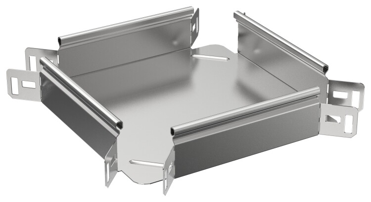 Крестовина предназначена для организации X-образного разветвления кабельной трассы в горизонтальной плоскости. Стыковка аксессуара с лотком осуществляется за счёт телескопического соединителя. Подходит для всех типов листовых лотков серии ESCA. Крышка на аксессуар заказывается отдельно. Аксессуар изготовлен из стали оцинкованной методом Сендзимира (защитный слой цинка не менее 5-10 мкм).