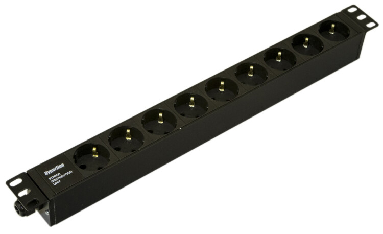 Блок розеток 19", 1U, 9 гнезд (Schuko), 16A, черный, без кабеля, Hyperline SHE19-9SH-CB