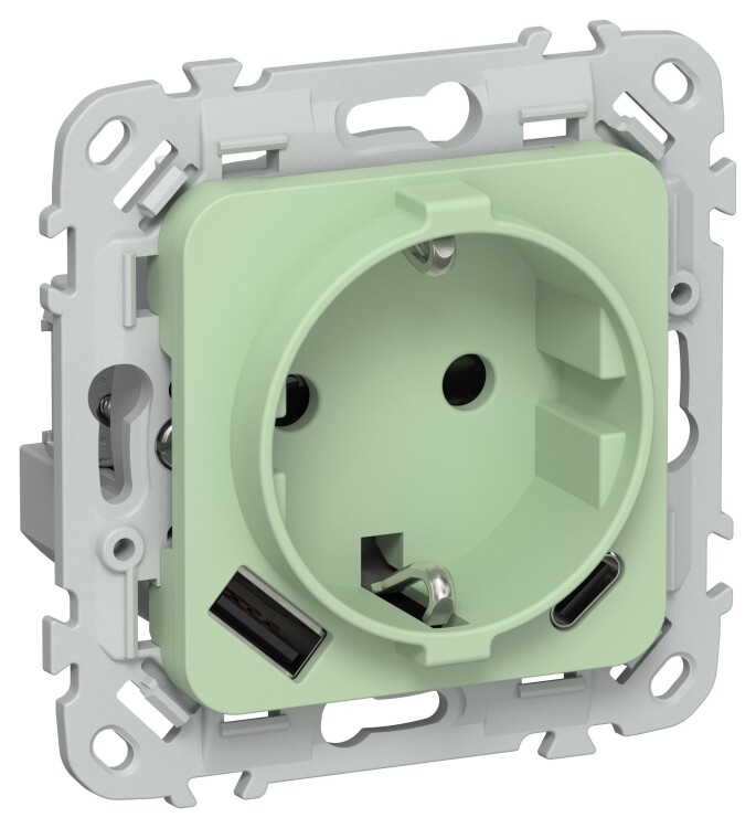 FLITE Розетка 1-местная с заземлением с защитными шторками 16А с USB A+C 20Вт РСЮшс11-0-ФлФ фисташко