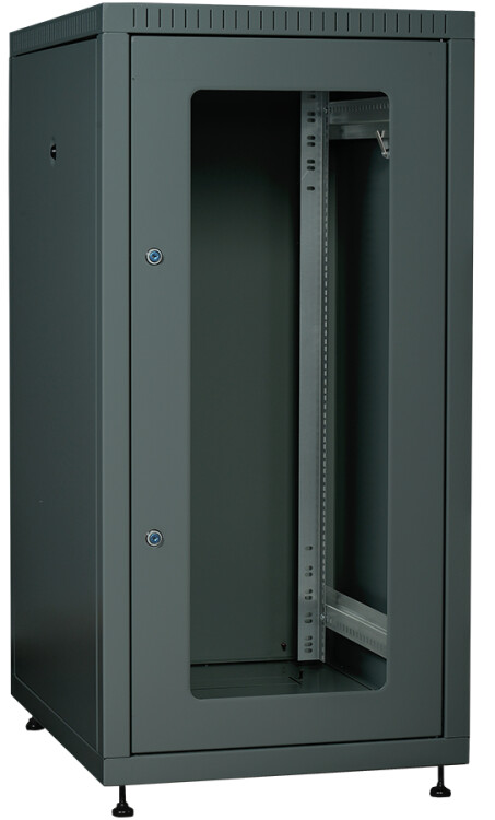 Шкаф напольный 19", 18U, 600х600мм, стекл. перед. дверь, задняя металл, серый, LINEA E, ITK LE35-18U66-GM