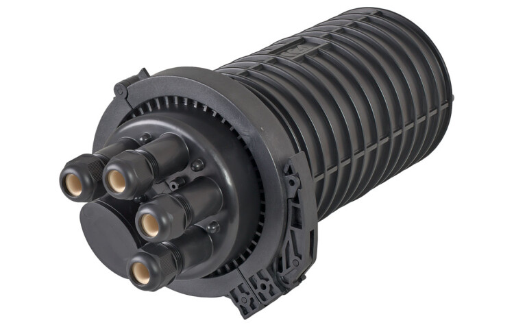 Предназначена для монтажа подвесных самонесущих ОК, оптических кабелей с вынесенным силовым элементом типа «8», а также городских кабелей любых конструкций. В муфте предусмотрен овальный ввод для транзитной петли оптических модулей без разрезания. Выкладка петли модулей осуществляется на лотке с противоположной стороны от кассет. Способ герметизации корпуса с оголовником механический. Осуществляется при помощи эластичной кольцевой прокладки и армированного пластикового хомута с самозатягивающимся замком. Замок хомута сконструирован таким образом, что при открывании защелка трансформируется в рычаг, обеспечивающий легкое снятие хомута с муфты. Ввод кабеля, крепление и герметизация осуществляется с помощью резьбовых фитингов, отлитых непосредственно на оголовнике муфты. Муфта имеет четыре круглых патрубка с фитингами и один овальный, герметизация вводимых в который кабелей осуществляется также механическим способом.