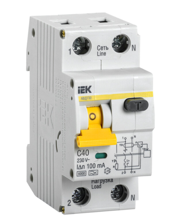Выключатель автоматический АВДТ 32 C40, 100мА, тип A, IEK MAD22-5-040-C-100