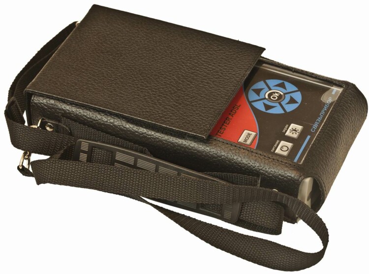 Данный чехол используется для более удобного эксплуатирования анализатора TESTER ADSL. Чехол может быть использован в качестве подвески и подставки: в закрытом состоянии крышка чехла защищает экран и разъемы, а в открытом состоянии служит в качестве подставки. Для удобства работы в чехле предусмотрены ручки и ремень для подвески. Передняя панель закрыта прозрачной пленкой.