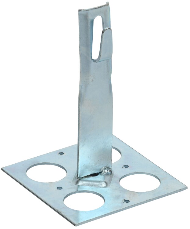 Держатель проводника круглого для плоской кровли с болтовым зажимом предназначен для закрепления прутка на плоской или наклонной кровле. Держатель крепится к кровле при помощи клея. Зажим проводника происходит путем загибания «язычка» держателя. Материал корпуса - сталь горячеоцинкованная.