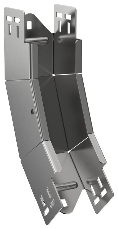 Поворот вертикальный внутренний на 45° предназначен для организации поворота кабельной трассы в вертикальной плоскости. Стыковка аксессуара с лотком осуществляется за счёт телескопического соединителя. Подходит для всех типов листовых лотков серии ESCA. Крышка на аксессуар заказывается отдельно. Аксессуар изготовлен из стали оцинкованной методом Сендзимира (защитный слой цинка не менее 5-10 мкм).