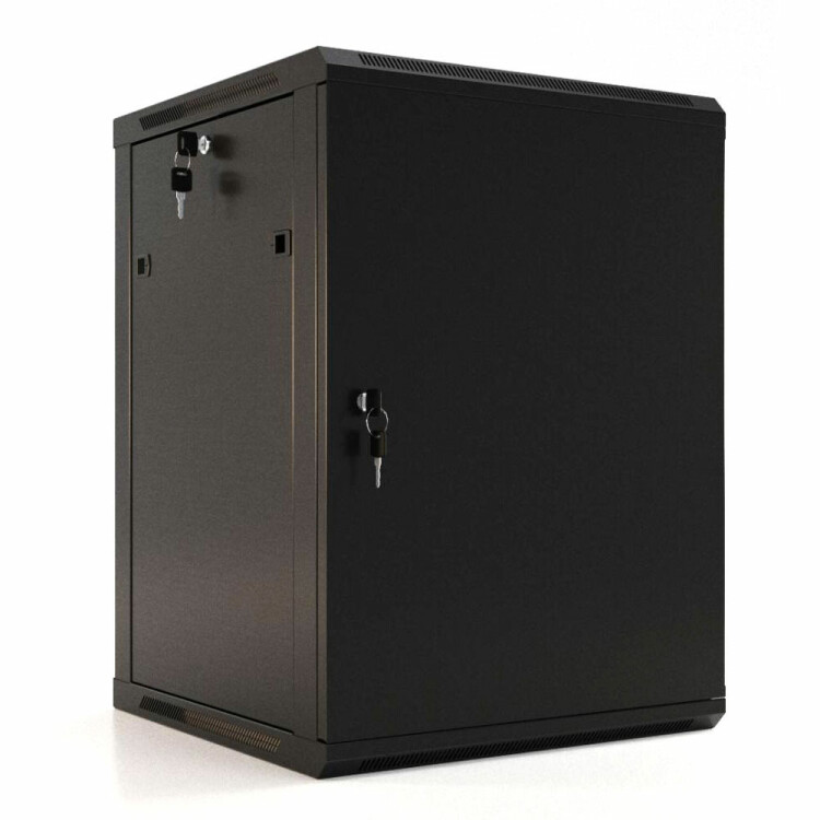 Шкаф настенный 19-дюймовый (19"), 22U, 1086x600х450мм, металлическая передняя дверь с замком, две боковые панели, цвет черный (RAL 9004) (разобранный)