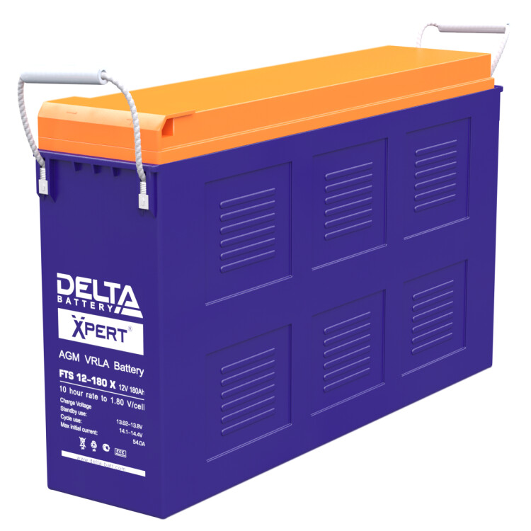 Герметизированные, необслуживаемые фронт-терминальные свинцово-кислотные аккумуляторы DELTA серии FTS-X изготовлены по AGM технологии с абсорбированным электролитом. Конструкция корпуса оптимизирована для установки в 19'' и 23'' телекоммуникационные шкафы и стойки. Главное преимущество серии FTS-X - повышенная удельная емкость. У серии FTS-X удельная емкость выше средней на 15%, что позволяет устанавливать большее количество аккумуляторов на фиксированной площади. Аккумуляторы серии FTS-X оптимальны для использований как при коротких, так и на длинных режимах разряда. Данная серия демонстрирует высокую однородность качественных показателей, что способствует увеличенной продолжительности эксплуатации.