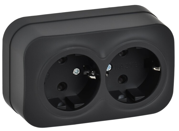 GLORY Розетка 2-местная для открытой установки с заземлением без защитных шторок 16А РС22-3-ХЧм черн