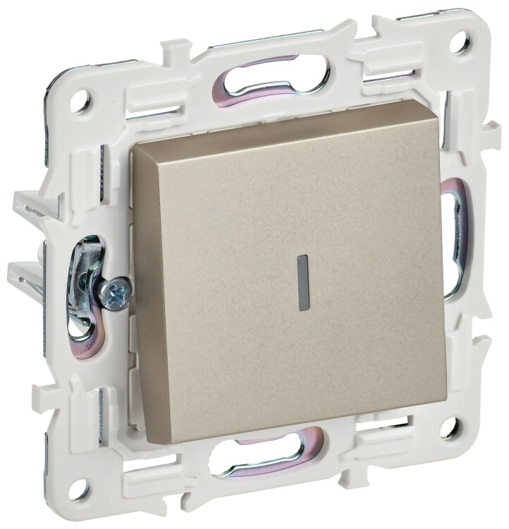 SKANDY Выключатель 1-клавишный проходной с индикацией 10А SK-V08Sh шампань IEK