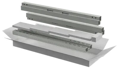Комплект стоек и профилей предназначен для установки в напольные 19" шкафы серии LINEA E. Вертикальные 19" монтажные профили имеют цифровую маркировку высоты в юнитах.