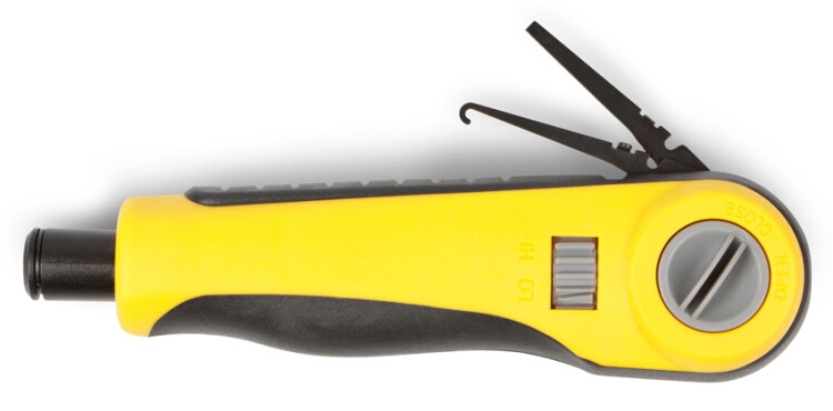 Hyperline HT-3640R Инструмент для заделки витой пары (нож в комплект не входит), ударный, регулируемый Заделка жил в кроссы, патч-панели и модули с контактами IDC Быстрая заделка контактов с одновременной обрезкой жил