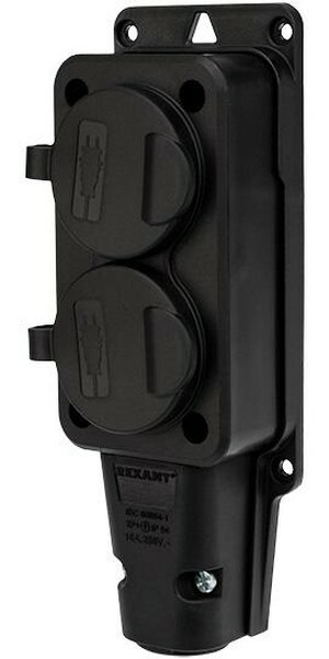 Электрическая влагозащищенная штепсельная двухместная розетка из каучука REXANT предназначена для использования в сложных эксплуатационных условиях с высокой влажностью и широко применяется в быту, производстве и строительстве. Она имеет степень защиты IP54 – защита от капель и брызг воды, попадающих под любым углом, и может быть применена для организации электропитания, в том числе под открытым небом. В дождь под навесом. Не допускается эксплуатация погружением в воду. Она легко монтируется, имеет высокую надежность и долгий срок службы. Количество штепсельных розеток с заземляющим контактом две штуки. Допускается присоединение двух вилок одновременно с суммарным максимальным током по ним 16 А. Каждое розеточное место оснащено защитной крышкой. Розетка может быть применена как в переносном, так и в стационарном варианте применения. Для крепления к поверхности розетка имеет специальные отверстия. Увеличенные клеммная крышка и вводная группа упрощают работу с кабелем сечением 2,5 мм².