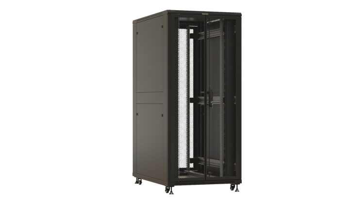 Hyperline TTBR-3288-DD-RAL9004 Шкаф напольный 19-дюймовый, 32U, 1610x800х800 мм (ВхШхГ), передняя и задняя распашные перфорированные двери (75%), ручка с замком, 2 вертикальных кабельных организатора, цвет черный (RAL 9004) (разобранный)