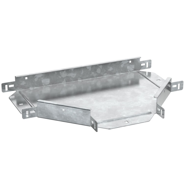 Разветвитель Т-образный горизонтальный предназначен для организации Т-образного ответвления кабельной трассы в горизонтальной плоскости. Стыковка аксессуара с лотком осуществляется за счёт телескопического соединителя. Подходит для всех типов листовых лотков серии ESCA. Крышка на аксессуар заказывается отдельно. Аксессуар изготовлен из стали оцинкованной методом горячего погружения (защитный слой цинка не менее 55 мкм).
