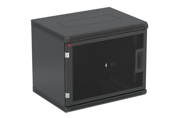 Шкаф настенный телекоммуникационный предназначен для размещения активного и пассивного телекоммуникационного оборудования. Выполнен в климатическом исполнении УХЛ 4.2, эксплуатируется в закрытых помещениях при температуре от +5 до +40 °С, при верхнем рабочем значении относительной влажности 80% при температуре +25 °С. Имеет полностью разборную конструкцию и состоит из шести основных частей: крыша, дно, две боковые стенки с вертикальными направляющими, дверь, задняя стенка* и две передние направляющие. За счет элементов крепления каркас шкафа имеет повышенную жесткость. Комплектация шкафа возможна с несколькими исполнениями двери-металлической, перфорированной и с каленым ударопрочным, тонированным стеклом. Предусмотрены два кабельных ввода в верхней и нижней частях шкафа, размер – 100х50 мм. В основание или крышу шкафа возможна установка вентиляторного модуля. Для установки модуля демонтируется заглушка, и модуль фиксируется шестью винтами. Вертикальные направляющие регулируются по глубине.