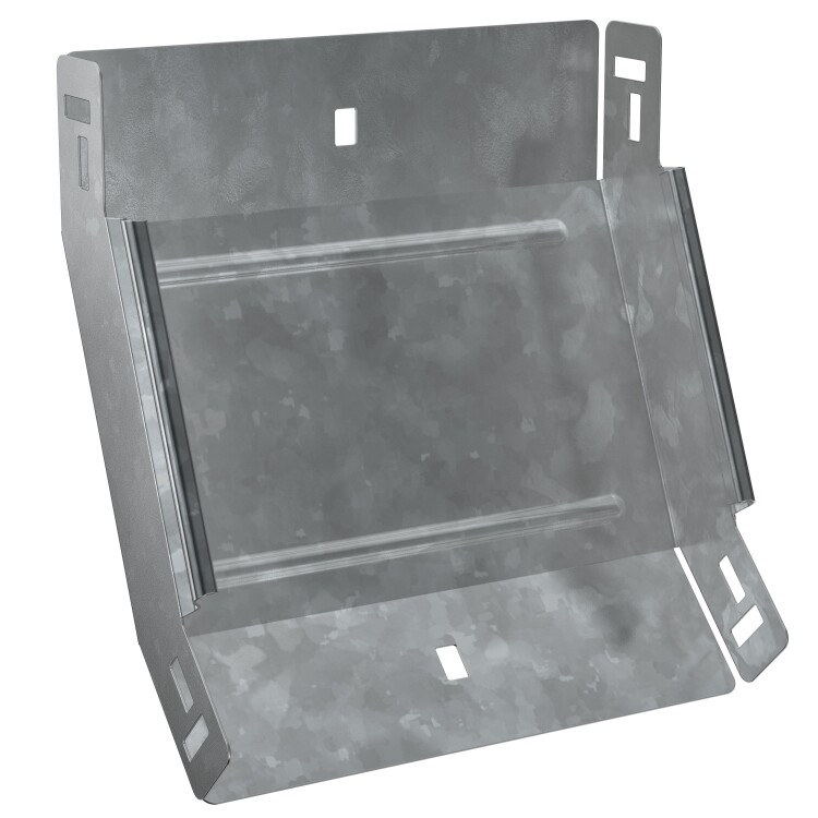 Поворот вертикальный внутренний на 45° предназначен для организации поворота кабельной трассы в вертикальной плоскости. Стыковка аксессуара с лотком осуществляется за счёт телескопического соединителя. Подходит для всех типов листовых лотков серии ESCA. Крышка на аксессуар заказывается отдельно. Аксессуар изготовлен из стали оцинкованной методом горячего погружения (защитный слой цинка не менее 55 мкм).