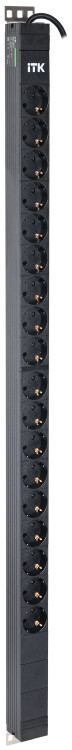 Вертикальный однотипный PDU ITK включает в себя 18 розеток Schuko. PDU ITK изготавливается из высококачественных термостойких материалов и пластмасс, оснащается 3-х метровым кабелем электропитания с вилкой Schuko. PDU ITK прекрасно справляется с задачей по электроснабжению сетевого оборудования в шкафах и стойках, а также с требованием защиты от токов короткого замыкания и перенапряжения. PDU ITK соответствует российским и международным стандартам качества и устанавливается с помощью кронштейнов, при этом положение кронштейнов можно менять.