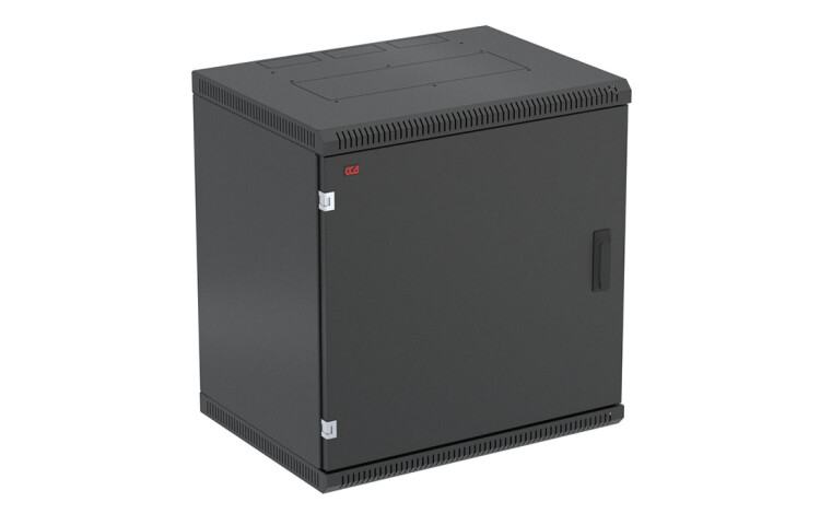 Шкаф настенный телекоммуникационный предназначен для размещения активного и пассивного телекоммуникационного оборудования. Имеет полностью разборную конструкцию и состоит из шести основных частей: крыша, дно, две боковые стенки с вертикальными направляющими, дверь, задняя стенка* и две передние направляющие. За счет элементов крепления каркас шкафа имеет повышенную жесткость. Комплектация шкафа возможна с несколькими исполнениями двери-металлической, перфорированной и с каленым ударопрочным, тонированным стеклом. Предусмотрены два кабельных ввода в верхней и нижней частях шкафа, размер – 100х50 мм. В основание или крышу шкафа возможна установка вентиляторного модуля. Для установки модуля демонтируется заглушка, и модуль фиксируется шестью винтами. Вертикальные направляющие регулируются по глубине. Система заземления и задняя стенка входит в стандартную комплектацию.
