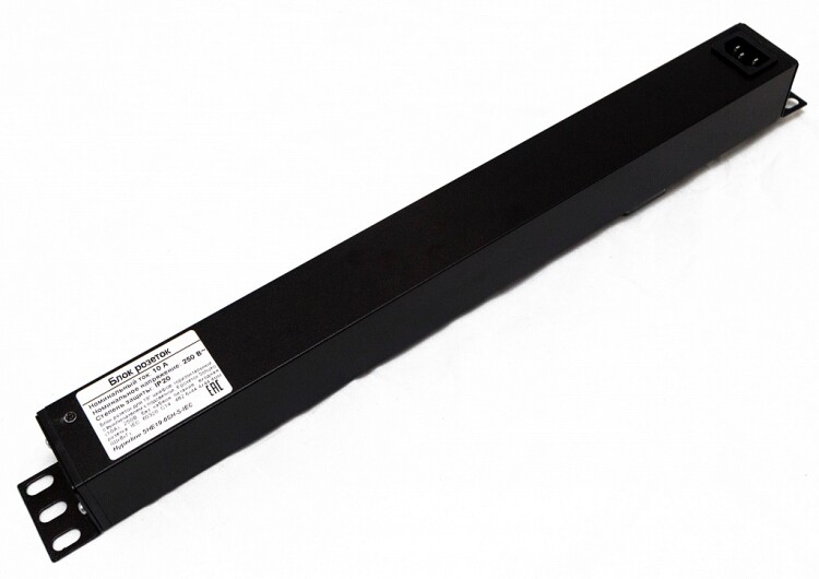 Hyperline SHE19-6SH-S-IEC Блок розеток для 19" шкафов, горизонтальный, горизонтальный, 6 розеток Schuko, выключатель с подстветкой, без кабеля питания, входной разъем IEC320 C14 10А, 250В, 482.6х44.4х44.4мм (ШхГхВ), корпус алюминий, черный