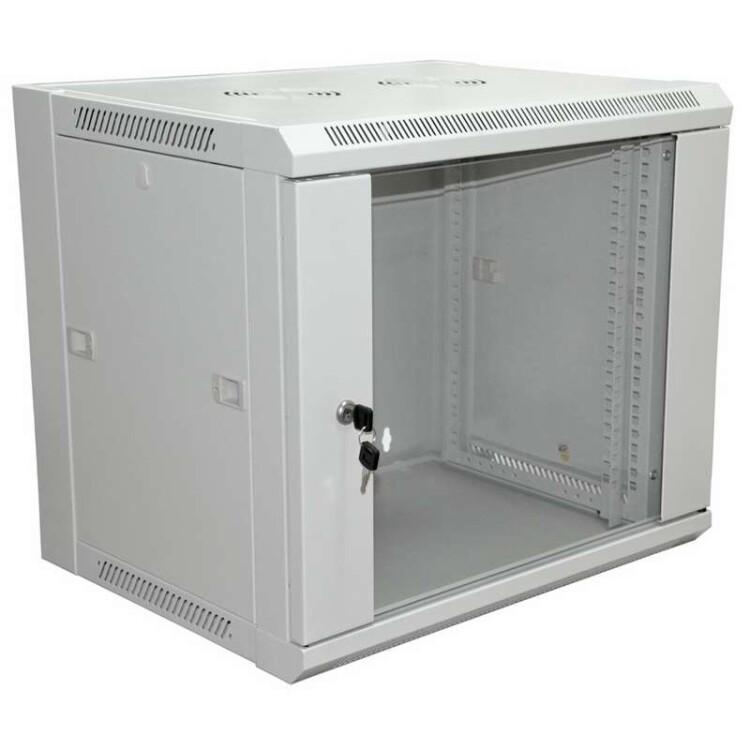 Настенный шкаф Rexant, односекционный, разобранный. Поставляется в удобном для транспортировки гофрокартонном ящике (одно место). Двери оснащены замком и имеют разные варианты исполнения, металлическими или из тонированного ударопрочного стекла. Дверца может быть установлена для открытия в левую и правую сторону. Боковые стенки - съемные, укомплектованы защелками, это обеспечивает легкий и удобный доступ к установленному в шкаф оборудованию. С задней стороны крыши и основания расположены 2 кабельных ввода. Для монтажа 19" оборудования используются пара вертикальных металлических профилей. В стандартную комплектацию входят два уголка для поддержки оборудования. На задней стенке шкафа есть отверстия для крепления к стене. Покрытие - порошковая окраска с предварительным фосфатированием.