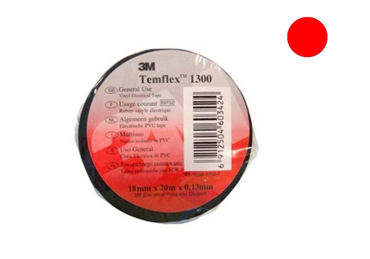 Изолента 0,13х15мм, 10м, красная, Temflex 1300